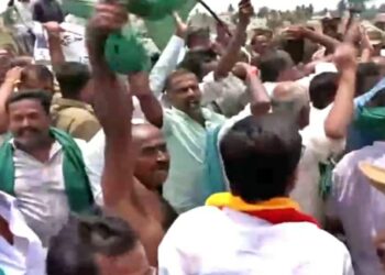 Mandya: Over 50 farmers, who were protesting against the release of water from Cauvery river to Tamil Nadu and attempted...