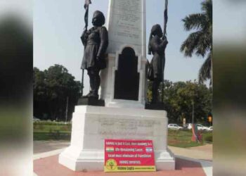 New Delhi: A right-wing organisation Hindu Sena on Sunday placed posters in support of Israel at Teen Murti, Haifa Chowk...
