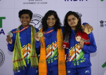 Guwahat: Pratyasa Ray emerged triumphant at the recently concluded Khelo India University Games 2023 Ashtalakshmi, bagging four gold, one silver...