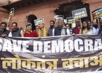 New Delhi: INDIA bloc MPs on Thursday marched from Parliament to Vijay Chowk to protest against the suspension of 143 MPs,...