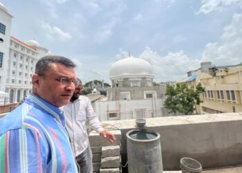 Hyderabad: AIMIM's floor leader in Telangana Legislative Assembly, Akbaruddin Owaisi on Wednesday inspected the construction work of the mosque at...