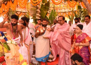 Hyderabad: Telangana Chief Minister K. Chandrasekhar Rao on Wednesday started a three-day Rajasyamala Sahitha Subramanyeswar Yagam. Accompanied by his wife...
