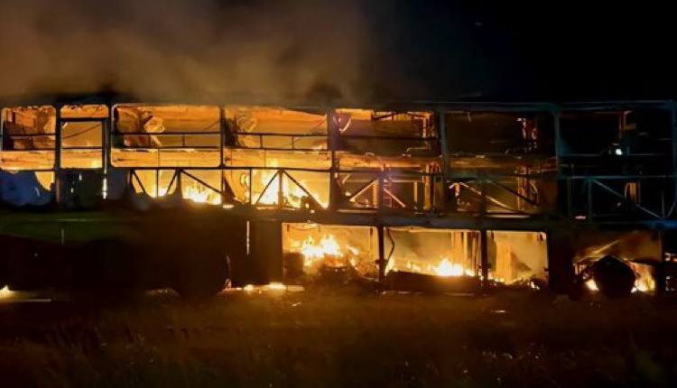 Kurnool: Eleven passengers were charred to death and nine others are missing as a private bus caught fire after hitting a two-wheeler in Andhra Pradesh’s Kurnool in the early hours of Friday.