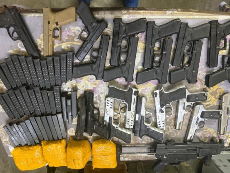 The recovered arms and ammunition include 11 Glock pistols with 22 magazines, one Beretta pistol with one magazine, five Zigana pistols along with 10 magazines, three Norinco pistols with five magazines, one Ghaffar Security pistol (MP-5 type) along with one magazine, and 310 cartridges (9MM).