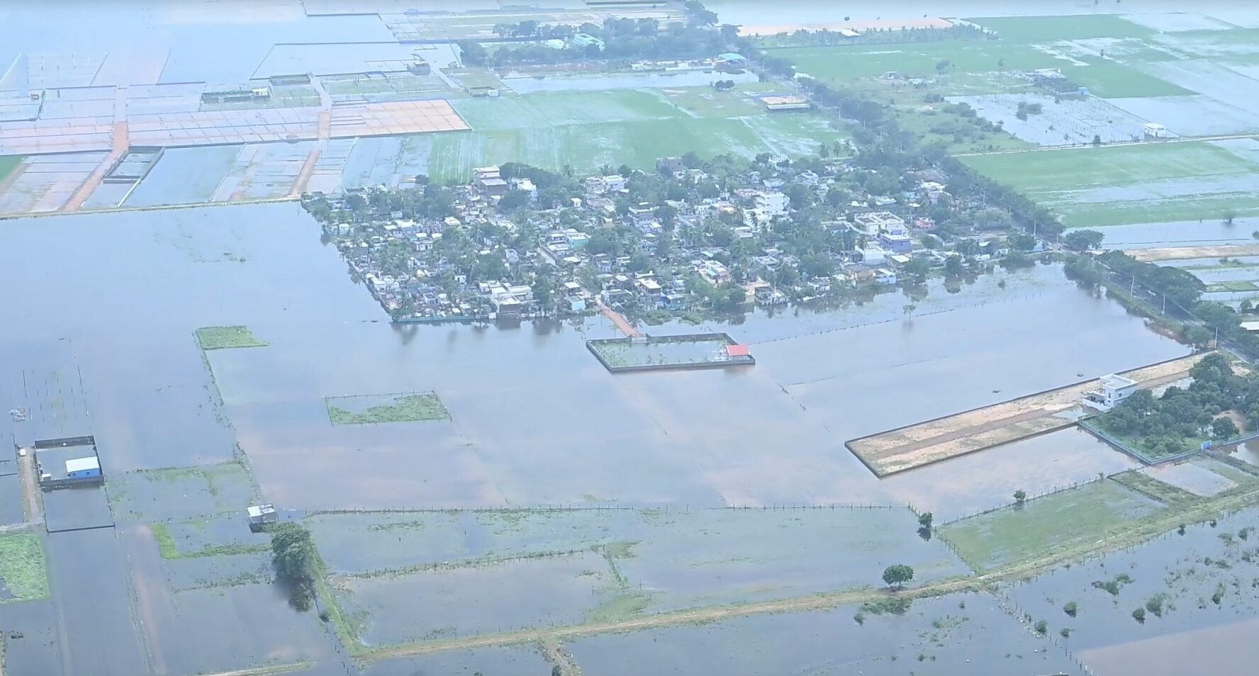 Vijayawada was receiving heavy rains under the impact of the cyclone, inundating low-lying areas. Rainwater flooded some roads in the city, disrupting traffic. Water also entered houses in some areas of the city.