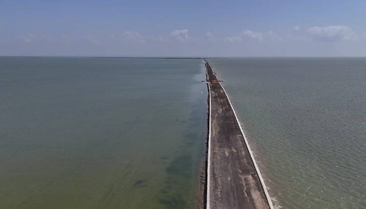 The 22-kilometre-long road is in the final stages of construction and may soon be opened for the public. Once built, it will cut across the white desert and the sea, stretching from Ekal to Bambhanka.