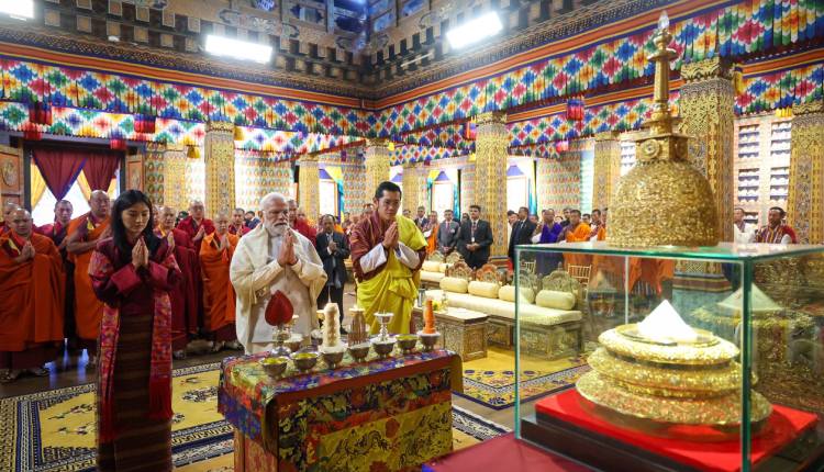 PM Modi visited Bhutan from November 11 to 12, during which he joined Bhutan king Jigme Khesar Namgyel Wangchuk in seeking blessings from the Holy Relics of Lord Buddha amid a rousing welcome given by the local monks at Thimphu’s Tashichhodzong.