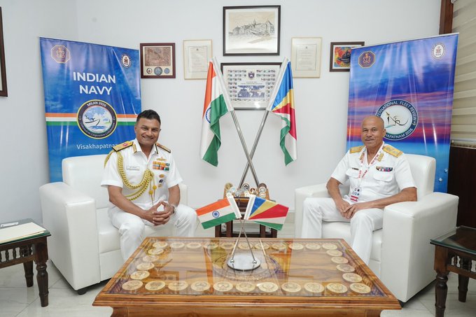 Western Naval Command’s Flag Officer Commanding-in-Chief, Vice Admiral Krishna Swaminathan, met Seychelles Defence Forces chief Major General Michael Rosette, and their discussions highlighted sustained operational engagement, including regular port calls by Indian Navy ships, Seychelles’ participation through PS Zoroaster, and cooperation in training and hydrographic domains, as well as continued collaboration under the SAGAR initiative.
