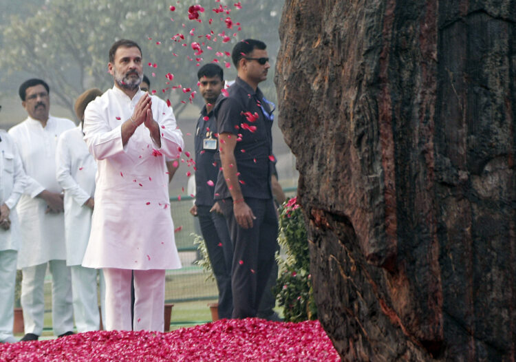 LoP Gandhi offered floral tributes to the late Prime Minister at Shakti Sthal in New Delhi, where he honoured her “steadfast leadership, fearless spirit, and deep commitment to the people of India.”