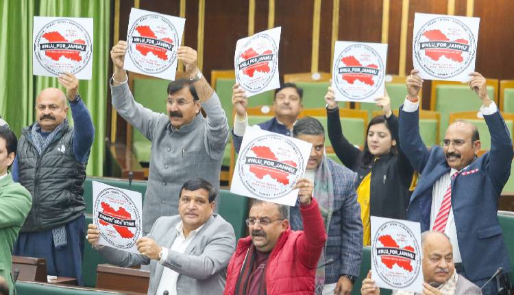 While Slathia was speaking, other BJP MLAs also stood up and displayed placards in support of the demand and raised slogans like “NLU for Jammu”.