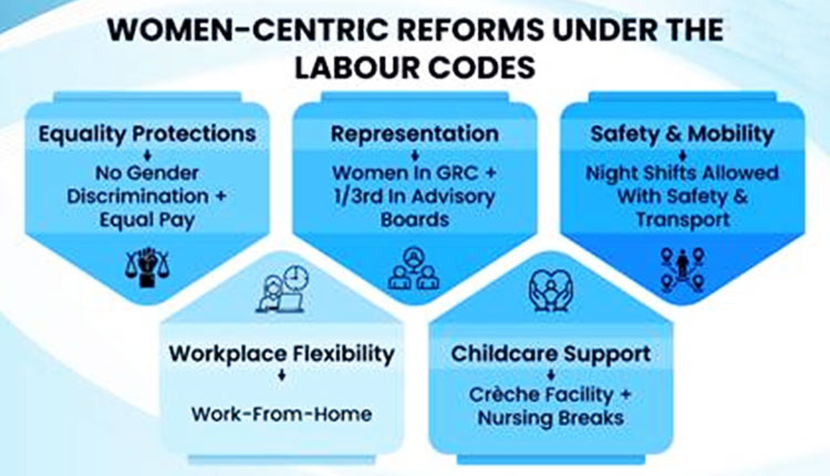 The Codes modernise labour regulations and provide women with equality, maternity benefits, workplace safety, and representation in decision-making bodies.