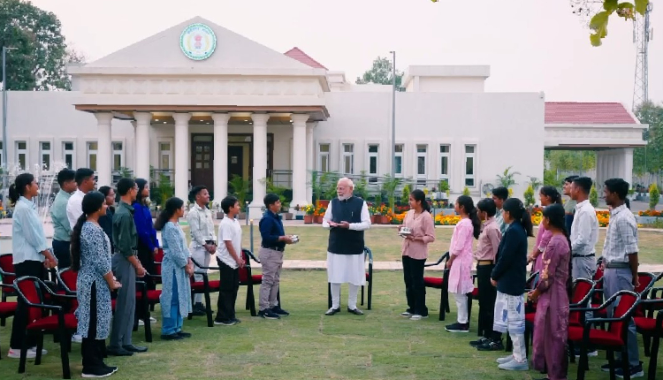 Prime Minister Modi interacted directly with students from Coimbatore in Tamil Nadu, Raipur in Chhattisgarh, Dev Mogra in Gujarat and Guwahati in Assam, symbolically connecting the east, west, north, south and the heart of India on one common platform.
