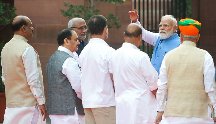 New Delhi: It was a brief, cordial exchange unlike those been witnessed when the House is in session as Prime Minister Narendra Modi and Leader of Opposition in Lok Sabha Rahul Gandhi met in Parliament complex on Saturday.