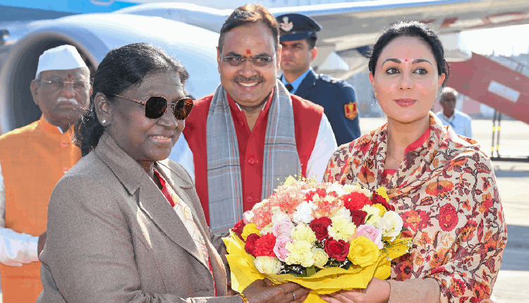 Jaipur: President Droupadi Murmu arrived in Jaipur on Friday on a one-day visit to Rajasthan, during which she participated in the 1008-Kundiya Hanuman Mahayagya and Shri Ram Katha organised at the Neendar residential scheme on Sikar Road.