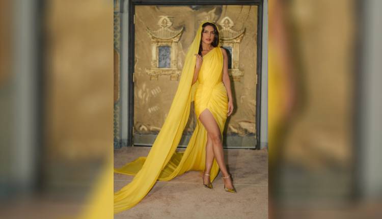 PeeCee turned heads in a vibrant yellow draped ensemble that blended heritage with high fashion, and gave the Indian saree a modern twist, further making a powerful statement about India’s evolving couture identity on an international stage.