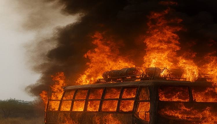 Jaipur: The Rajasthan government on Tuesday said that the ill-fated sleeper bus which caught fire after coming in contact with a high-tension electric wire near Jaipur had taken an unpaved road to reach a brick kiln. Officials said the off-road route brought the vehicle dangerously close to the overhead power lines, leading to a fatal blaze.