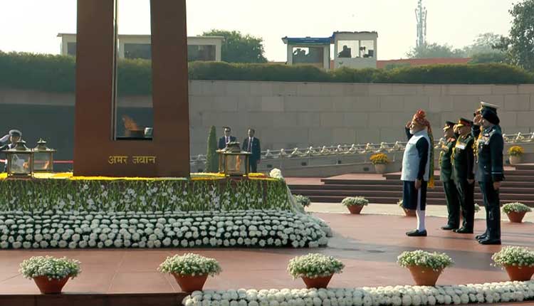 In a solemn ceremony, PM Modi laid a wreath at the memorial, leading the nation in honouring the brave soldiers who sacrificed their lives for the country.
