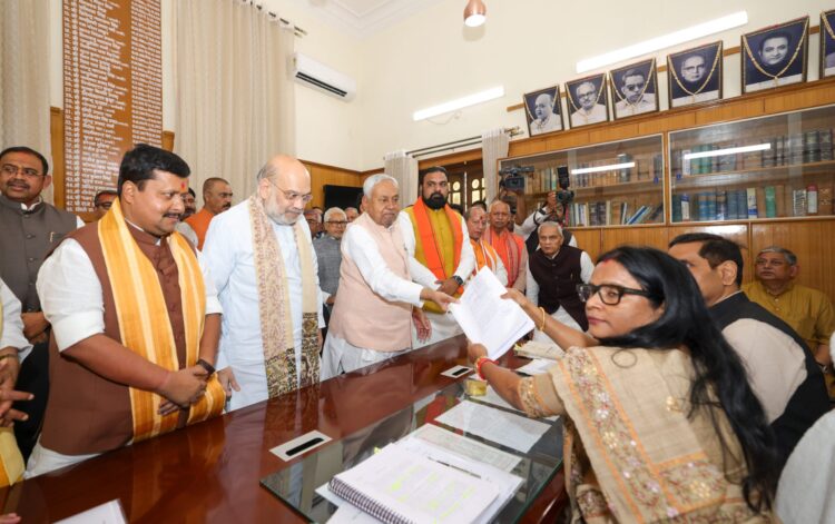 Patna: Union Home Minister Amit Shah, on Thursday, effusively praised Bihar Chief Minister Nitish Kumar’s governance, stretching over the past two decades, even as the latter signed nomination papers for the next course of his political journey, from Legislature to the Parliament while also paving way for the leadership change in the state.