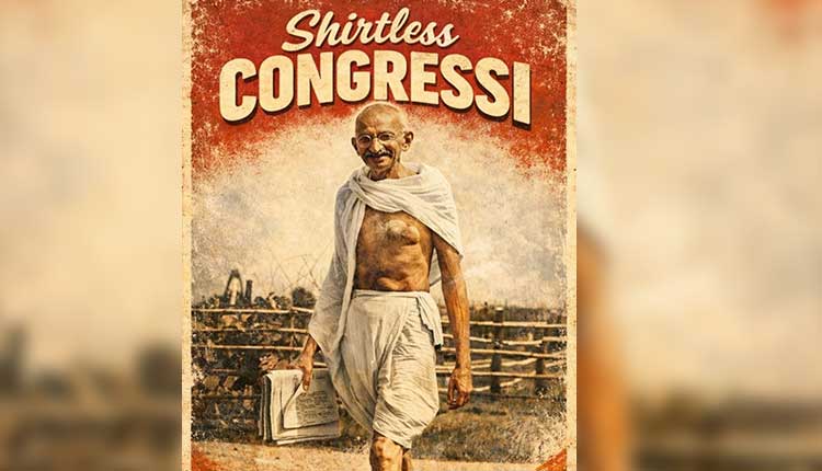 The message was accompanied by a photograph of Mahatma Gandhi bearing the tag ‘Shirtless Congressi’.