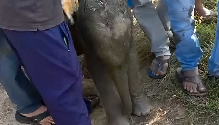 According to reports, a herd of elephants had entered the area from a nearby forest on Friday night to feed on paddy crops. The herd included the baby elephant. As dawn approached, the elephants began returning towards the Mandargiri forest, but the calf got stuck in the muddy field and was unable to free itself. The mother elephant, unable to rescue her calf, eventually left it behind and moved back into the forest with the herd.