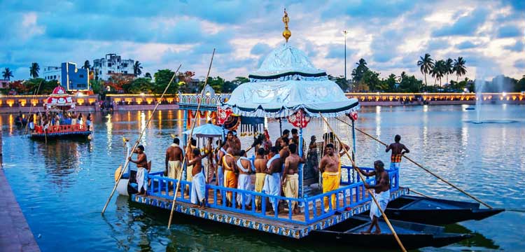 Simultaneously, the Puri Shree Jagannath Temple’s longest annual festival, the 42-day Chandan Yatra, also commenced on Akshaya Trutiya. The festival is divided into Bahara (outer) Chandana, which runs for the first 21 days, and Bhitara (inner) Chandana. During the Bahara phase, representative idols of the main deities along with the Pancha Pandava Shivalingas are taken in procession from the Singhadwara to the Narendra Tirtha tank. The deities are placed on beautifully decorated boats for evening cruises on the tank to provide relief from the summer heat.
