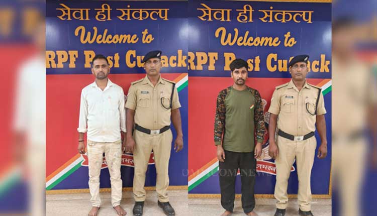 Railway Protection Force (RPF) Post Cuttack conducted checks on two long-distance trains, leading to the arrest of two employees.