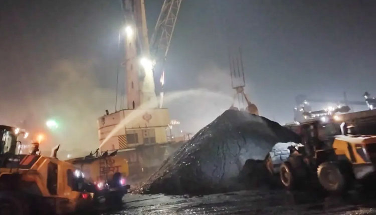 Bhubaneswar: A fire erupted on a cargo ship, Eco Colonel Monorvia, at Paradip Port early Sunday morning. The incident occurred at 12:55 am while thermal coal was being loaded onto the ship via a conveyor belt at Chennai Radha berth.