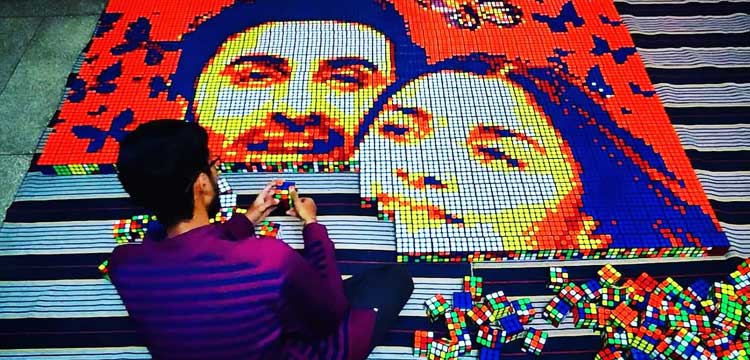 Driven by curiosity and passion, he spent two to three months experimenting to master the technique of forming portraits from cubes, despite numerous challenges.
