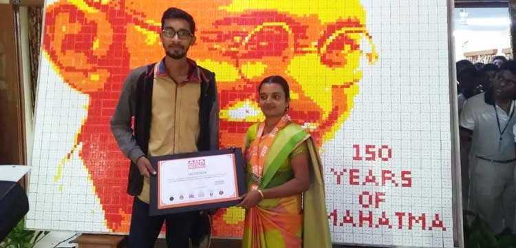 During his fourth year of college, Sumeet traveled to Tamil Nadu and created a massive portrait of Gandhi using 1,927 cubes. The work was successfully registered in the Asia Book of Records — a record-breaking achievement for cube art in India.