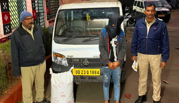 According to official sources, the operation was carried out near the L&T office on Bank Street following a specific tip-off. Acting swiftly on the information, the police intercepted a white Tata Magic vehicle bearing registration number OD-23Q-1884, which was being used to transport the contraband.