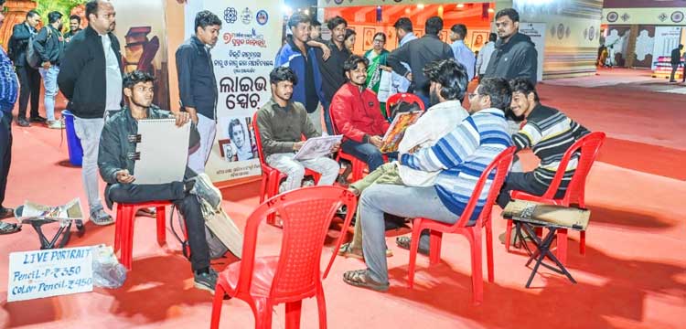 One of the major attractions this year is the live sketching counter set up by Bibhuti Kanungo College of Art and Crafts. Every evening, eight students from the college create live pencil and brush-colour sketches of visitors, drawing significant interest from readers. A pencil sketch is priced at ₹350, while brush-colour sketches or paintings cost ₹450.