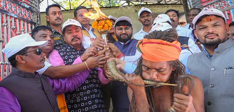 Jeypore: The much-awaited national-level Lok Mahotsav Parab–2025 was inaugurated with grandeur and cultural fervour in Koraput district on Tuesday. The celebrations began with traditional rituals at the Sahasra Shivalinga Temple in Kutunipadar under Lakshmipur block, where the Parab mashal (torch) was lit following puja and carried in a grand procession to the festival ground.