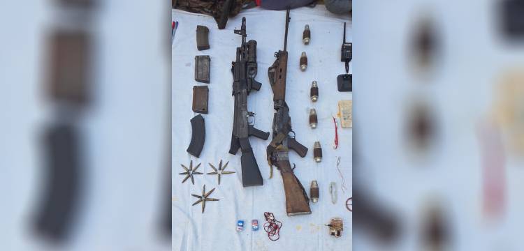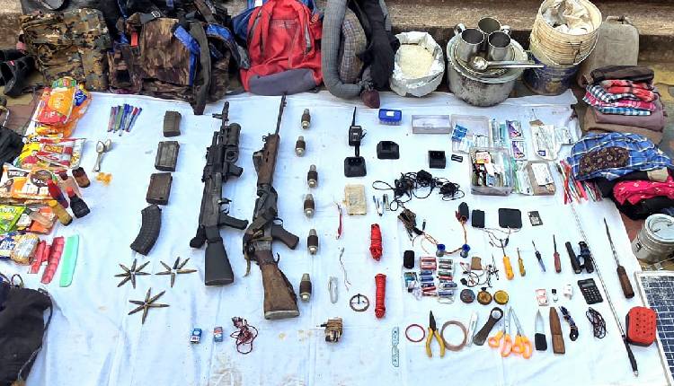 Weapons and materials seized from the encounter site include one AK-47 fitted with an Under Barrel Grenade Launcher (UBGL), six UBGL grenades, a 7.62 mm Self-Loading Rifle (SLR) with magazines, a large quantity of ammunition, medicines, walkie-talkies, and other Maoist paraphernalia.