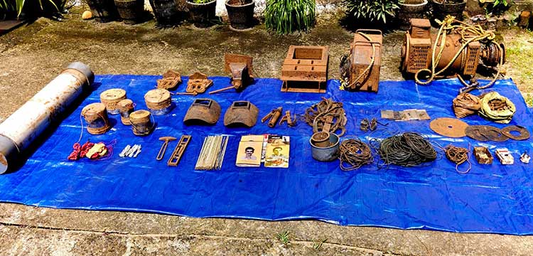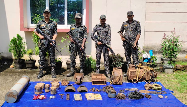 The seized items include Improvised Explosive Devices (IEDs), detonators, codex wire, a generator, welding machines, and other equipment suspected to be used for making IEDs and repairing arms. Literature and other articles belonging to the Maoists were also recovered.