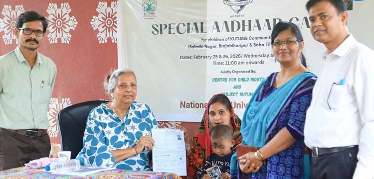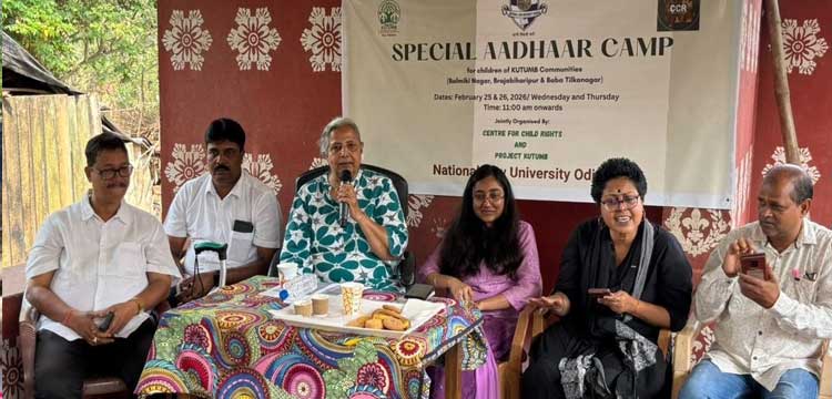Cuttack: In an important initiative to advance child rights and social inclusion, the Centre for Child Rights (CCR) of National Law University Odisha (NLUO) and the University’s flagship community outreach initiative, Project KUTUMB, jointly organised a Special Aadhaar Enrolment Camp on February 25, 2026, at the Balmiki Nagar Community Centre, CDA-13, for over 50 children from the Balmiki Nagar, Brajabiharipur, and Baba Tilkanagar urban settlements of Ward No. 3, Cuttack Municipal Corporation (CMC).