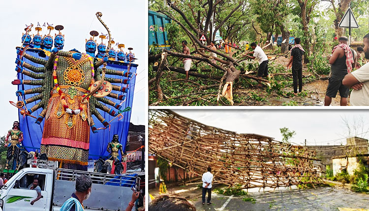Nayagarh: A powerful Nor’wester (Kalbaisakhi) lashed Nayagarh district on Monday, uprooting roadside trees, damaging roads, and blowing away the 35-foot-tall wooden Ravana sculpture that was to be the centerpiece of the famous Daspalla ‘Lanka Podi Yatra’.