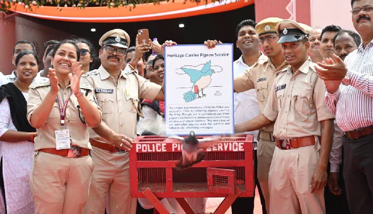 Bhubaneswar: The Odisha Police Pigeon Service took flight today at the ‘Nyaya Sanhita Exhibition’, held at Unit-3, IDCO Exhibition Ground. As part of the demonstration, 18 Belgian Homing Pigeons were dispatched from Bhubaneswar to Cuttack in two batches, carrying messages in small capsules tied to their legs — reviving the legacy of the historic “pigeon post.”