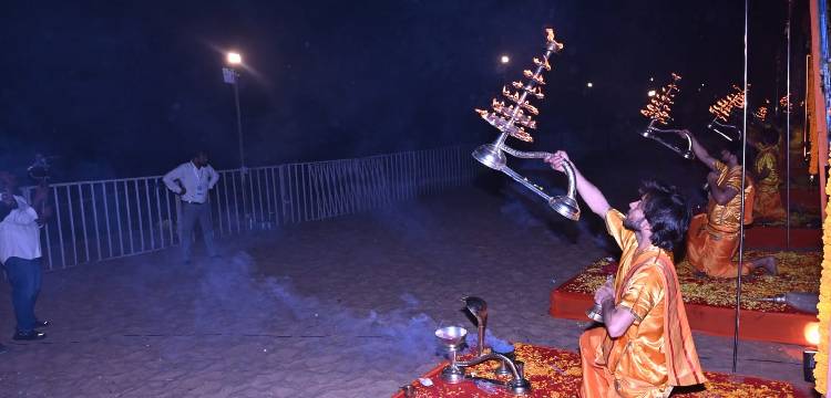 This morning, a torch procession commenced simultaneously from Maa Taratarini Temple (Purushottampur), Maa Balakumari Temple (Chikiti), and Maa Kulada Devi Temple near Bhanjanagar. The processions converged near Narayanpur village, and from there, under the leadership of Minister Bibhuti Bhushan Jena, a grand procession with Naam Sankirtan proceeded to Gopalpur Beach. At the beach, saints from Varanasi performed a unique Sea Aarti—virtually for the first time in Odisha—marking the auspicious inauguration of the festival.