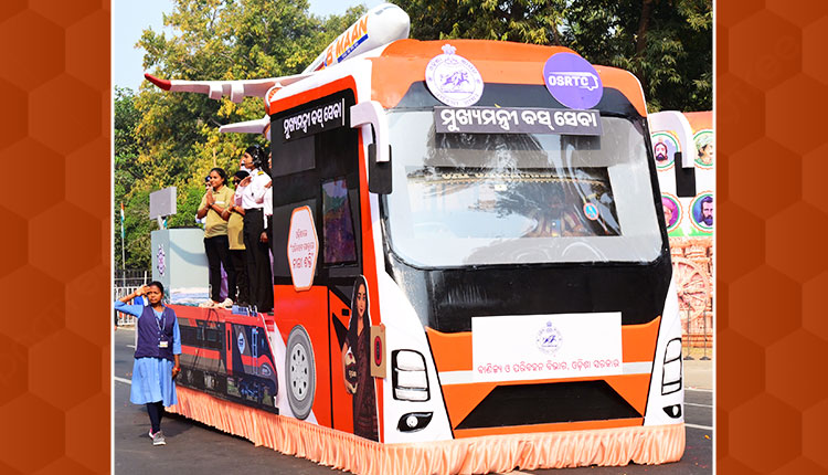 Bhubaneswar: The Odisha government rolled out a tableau on the theme “Women in the Transport Sector” at Mahatma Gandhi Marg in Bhubaneswar during the state-level Republic Day celebrations on Monday. The tableau focused on “Nari Shakti” and offered a glimpse into the trailblazing journey of a woman locomotive pilot from Sundargarh.
