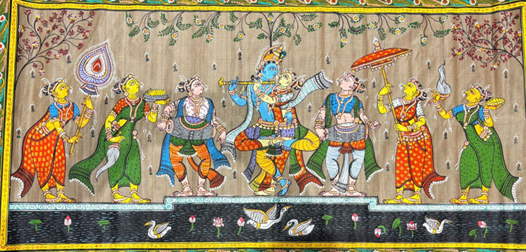 The exquisite artworks depicted Lord Shri Krishna’s divine Raslila and the various majestic beshas (attires) of Mahaprabhu Jagannath, symbolising India’s spiritual depth and artistic excellence. Crafted using natural colours on cloth, the paintings reflected Odisha’s centuries-old scroll-painting tradition.