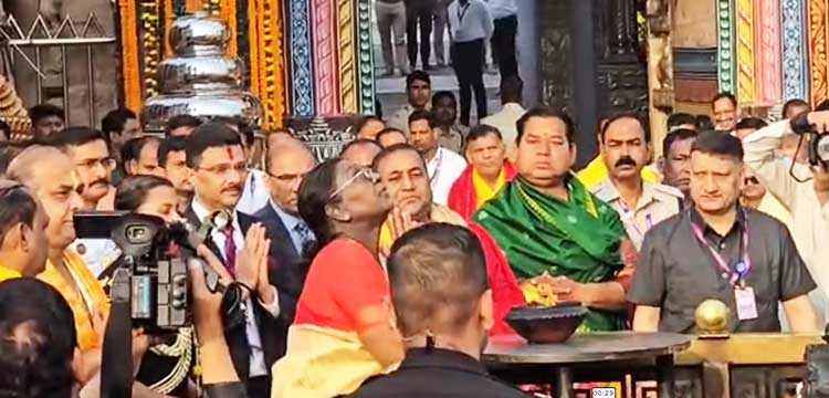 According to reports, President Droupadi Murmu arrived at the Jagannath Temple in Puri at 7:40 am today and is currently offering prayers to sibling deities Lord Jagannath, Lord Balabhadra, and Devi Subhadra. She spent time in the temple from 7:45 am to 8:10 am. General darshan at the temple will remain suspended till 10 am, until the Gopal Ballav Bhog ceremony is completed.