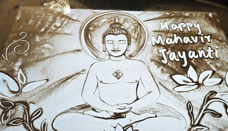 Puri: Renowned sand artist Manas Sahoo created a spectacular sand animation at his Puri studio on Tuesday to mark Mahavir Jayanti. The two-hour-long artwork vividly portrayed the life, teachings, and message of Lord Mahavir.