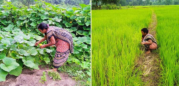 Puspanjali’s family consists of her husband, mother‑in‑law and a daughter. Her husband is deaf‑mute from birth and cannot do any outside work. Her mother‑in‑law used to work in the fields, and whatever she earned keeps the family afloat. As age advanced, it was difficult for her to become farm work. Amidst all this, Puspanjali thought of stepping out and helping shoulder the family’s burden. Her mother‑in‑law and husband supported her wish. Since 2020, with her own efforts, the 35‑year‑old Pushpanjali has been cultivating rice by organic methods and also conserving indigenous seeds.