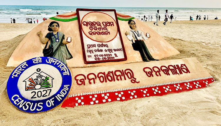 Puri: Renowned sand artist and Padma Shri awardee Sudarsan Pattnaik has created a striking sand art installation at Puri sea beach to raise awareness about the upcoming Census of India 2027.