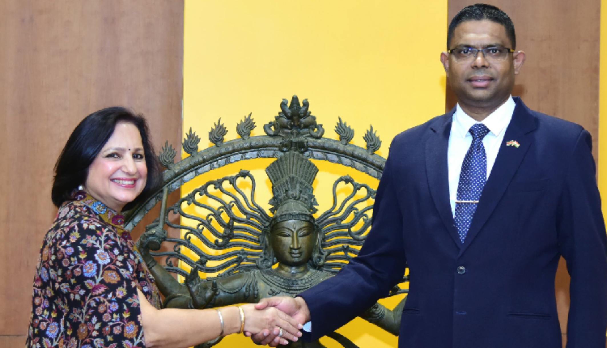 New Delhi: Secretary (South), Ministry of External Affairs (MEA) Neena Malhotra met Suriname’s outgoing Ambassador to India Arunkoemar Hardien in New Delhi on Tuesday and reviewed the progress in bilateral ties. Malhotra extended wishes to Hardien for his future endeavours.
