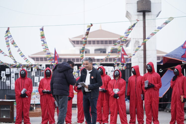 “But the pivotal point was when I got Squid Games masks from India, dressed up 10 people wearing the games’ outfits and then made them walk around the streets of Kathmandu without informing it as a part of my campaign,” he said.